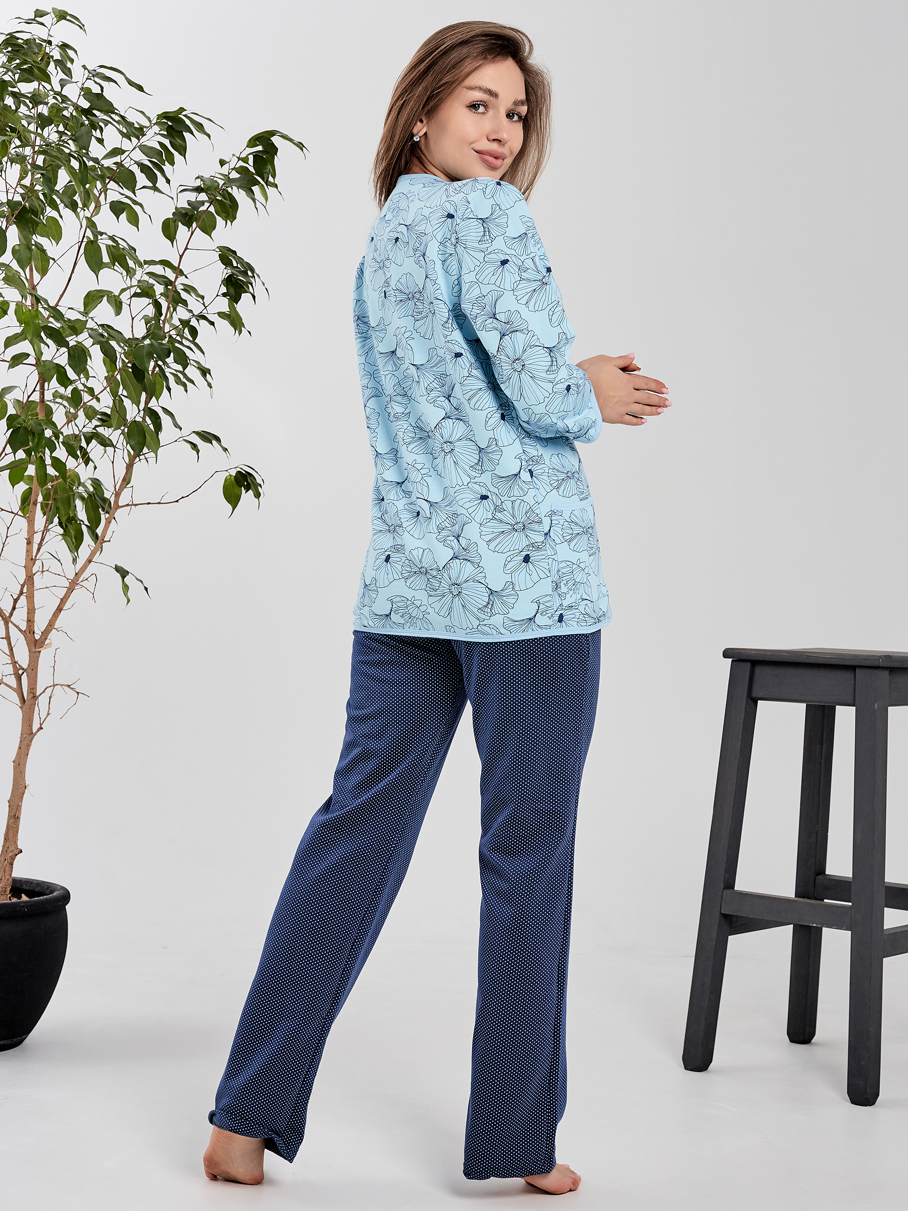 Пижама с пуговицами из футера женская
